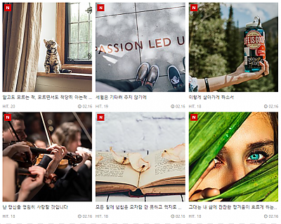 마우스 오버시 이미지가 확대되며 다양한 글 정보를 노출시킬수 있습니다.