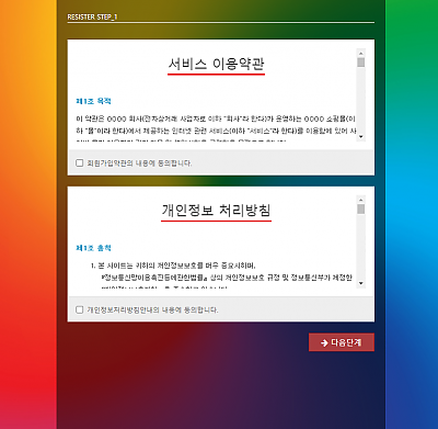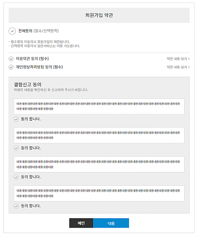 회원가입약관 디자인입니다.