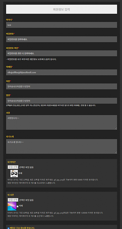회원가입 폼 다크버전