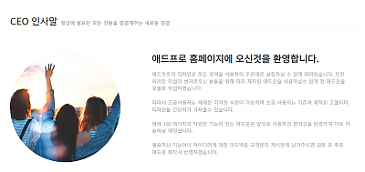 대표인사말 등으로 사용하면 좋은 페이지 입니다.